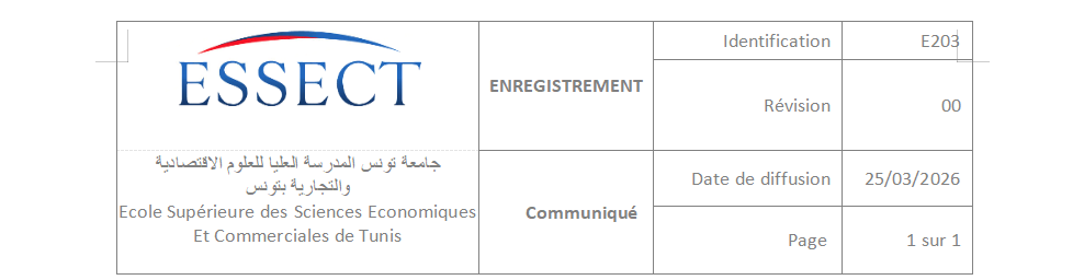 L’administration de l’ESSECT informe l’ensemble des étudiants de deuxième année Master de recherche, concernés par le dépôt des mémoires de fin d’études – session du 16 avril 2026 – que, dans le cadre des préparatifs à cette échéance, ils sont invités à accéder au site web de l’établissement (www.essect.rnu.tn) et à consulter les vidéos disponibles via les liens suivants :