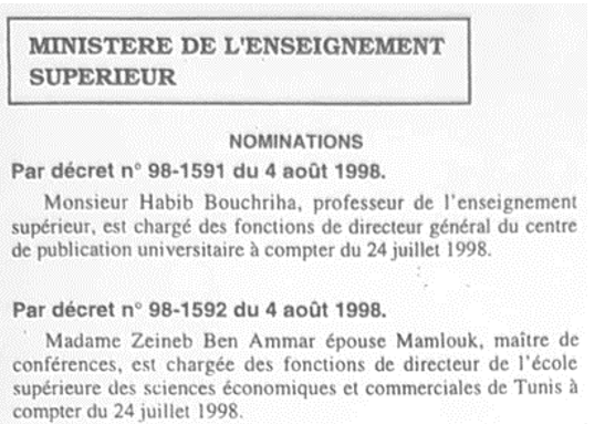 Ce lundi-là, à 8 heures, j’adressai par fax une lettre au Ministre, signalant ce manquement. À 11 heures, le chef de cabinet, M. Ridha Ben Jrad, se présenta en personne. À midi, les tableaux étaient fixés aux murs.