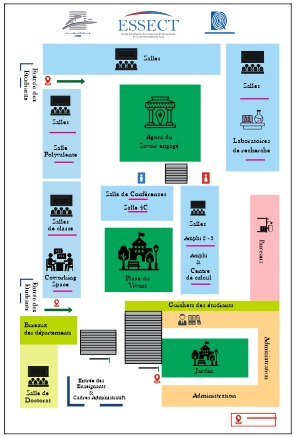 Moderne et fonctionnel, notre campus offre une infrastructure de premier plan conçue pour répondre aux exigences de l'enseignement supérieur contemporain. Avec une capacité d'accueil structurée autour de 3 amphithéâtres et de 36 salles de cours (dont 10 salles de grande capacité), l'établissement permet une modularité pédagogique allant des conférences magistrales aux travaux dirigés en effectifs réduits.